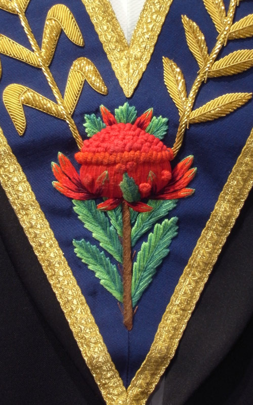 Waratah motif on a Canberra Masonic Lodge (No. 465) collar.
